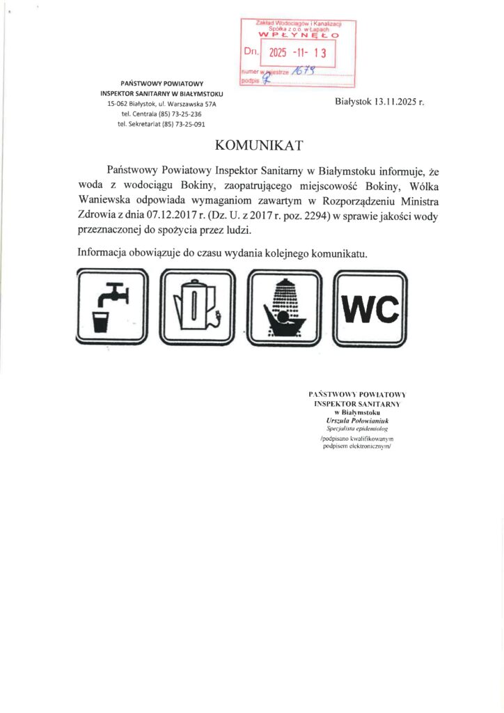 Komunikat ?> Komunikat 14 listopada 2025 admin KOMUNIKAT Państwowy Powiatowy Inspektor Sanitarny w Białymstoku.